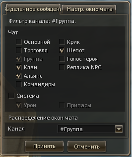 Рекомендую настроить чат группы, клана и альянса так: